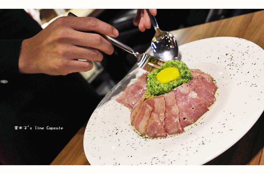 只見Tony以輕巧優雅的姿態運用刀叉一一挑開培根肉,