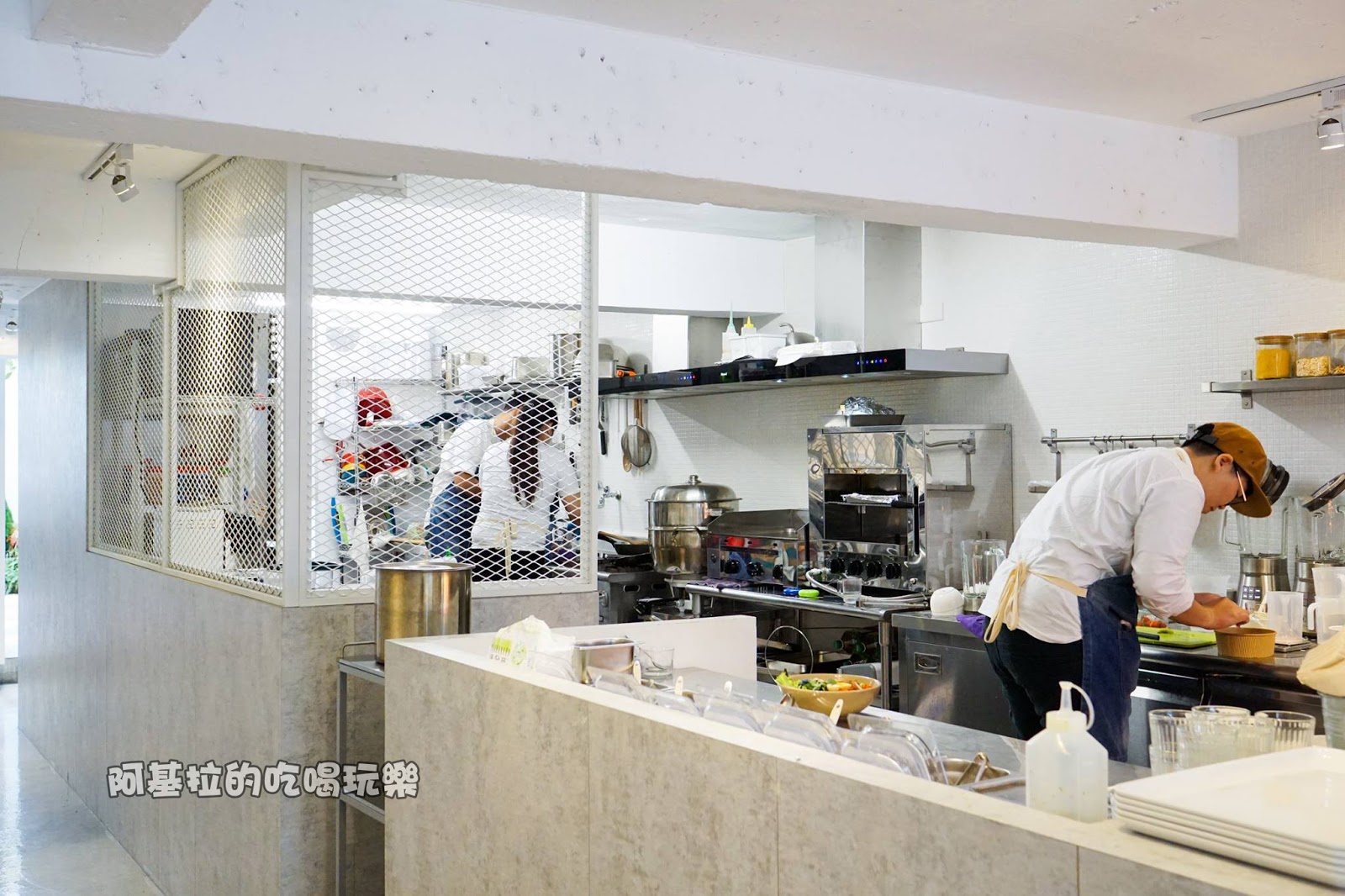 一走進店裡看到是開放式的廚房,員工們正在忙錄地製作料理,雖然距離烹飪的地方非常接近,但是現場沒有聞到什麼油煙味,也許這就是店家講求健康料理的一項證明。