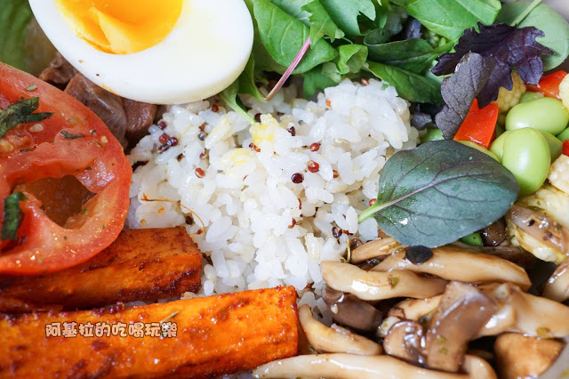 米飯的部份有放入藜麥,讓軟硬適中的白飯之中多了微微的顆粒口感,搭配各種美味的配料,讓我一口接一口,吃的很滿足。