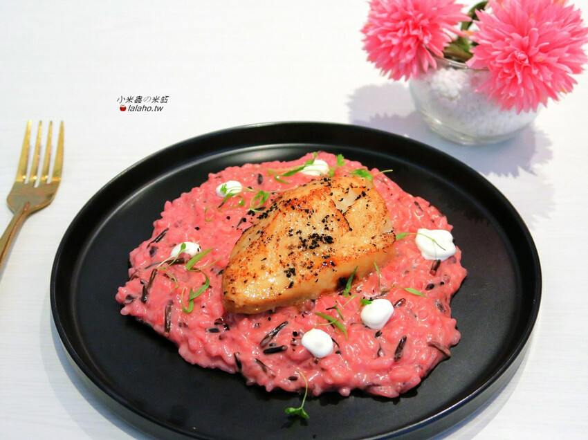 以甜菜根的天然色素將燉飯渲染成粉紅色的外表相當討喜,也非常浪漫~