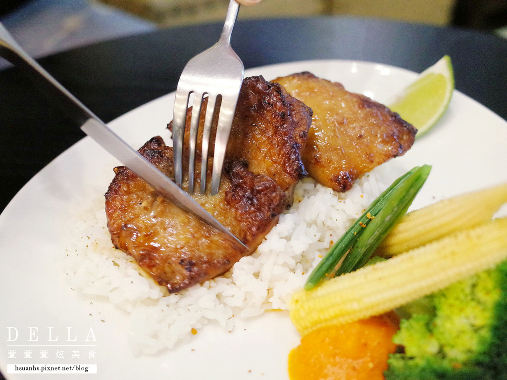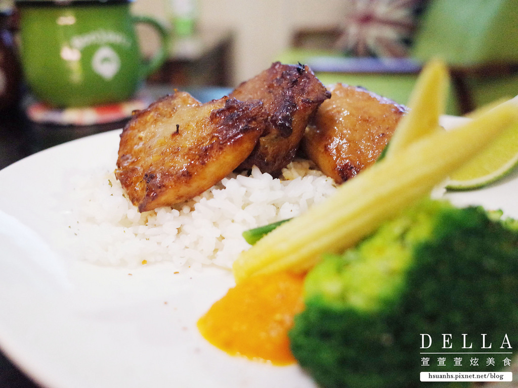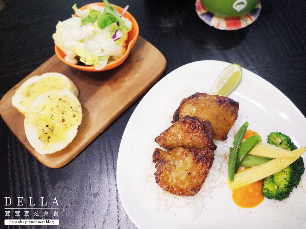 旁邊附有蔬菜與主廚特製的紅椒醬,口味清淡不油膩,適合在意身材的女生