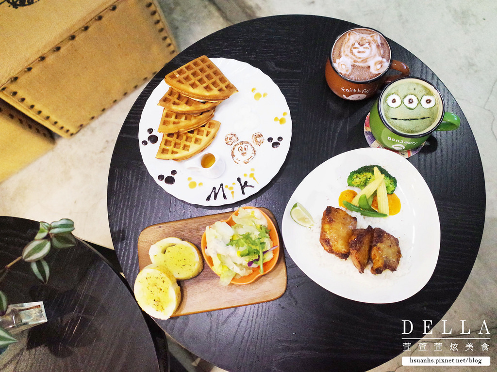 抹茶拿鐵、摩卡拿鐵、貴妃鬆餅、黃金無骨雞腿排+套餐沙拉