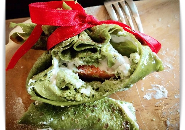 日本進口抹茶粉製作可麗餅包著抹茶慕斯與新鮮草莓,