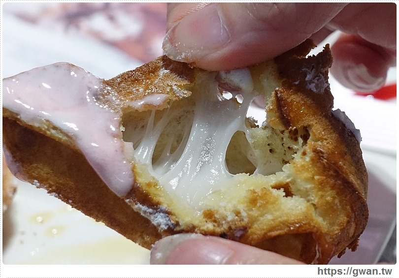它們家的鬆餅有花朵形與長條形 還可以加購原味or黑糖麻糬包在鬆餅裡