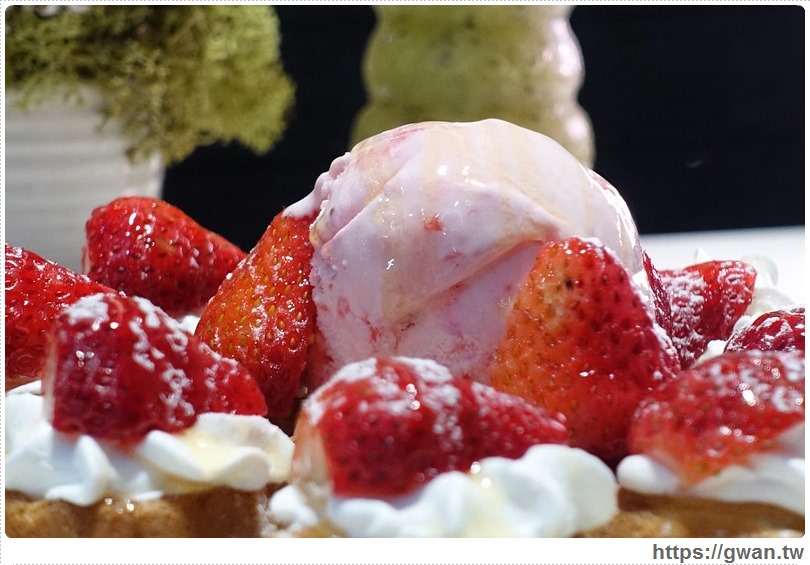 草莓鬆餅搭草莓冰淇淋,看起來真是太邪惡了~