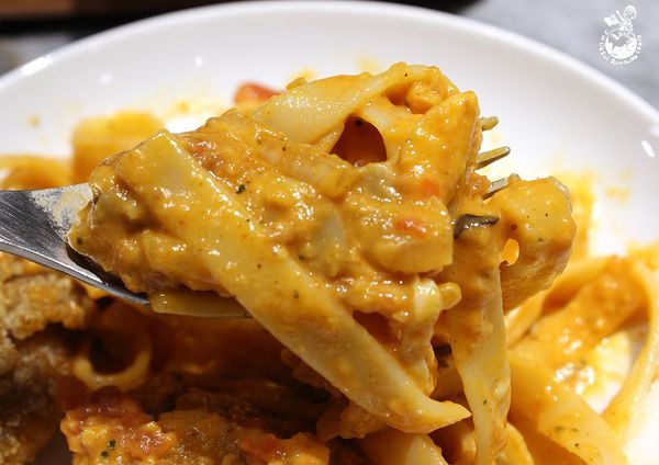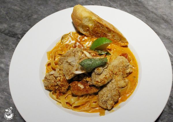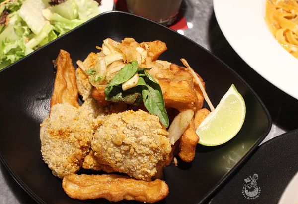 將台式小吃鹽酥雞和義大利麵結合,且每塊鹽酥雞都個頭不小,很有誠意!鹽酥雞是双双咖啡的拿手絕活,如果不想額外點鹽酥雞拼盤,泰式檸檬鹽酥雞和羅勒青醬鹽酥雞這兩款義大利麵也都吃得到