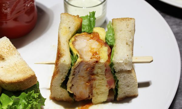 ▲豬排炸得金黃,從外表研判應該很酥脆,因為我已經飽到快臨盆就沒有享用雞腿排三明治和豬排了(拍肚皮)