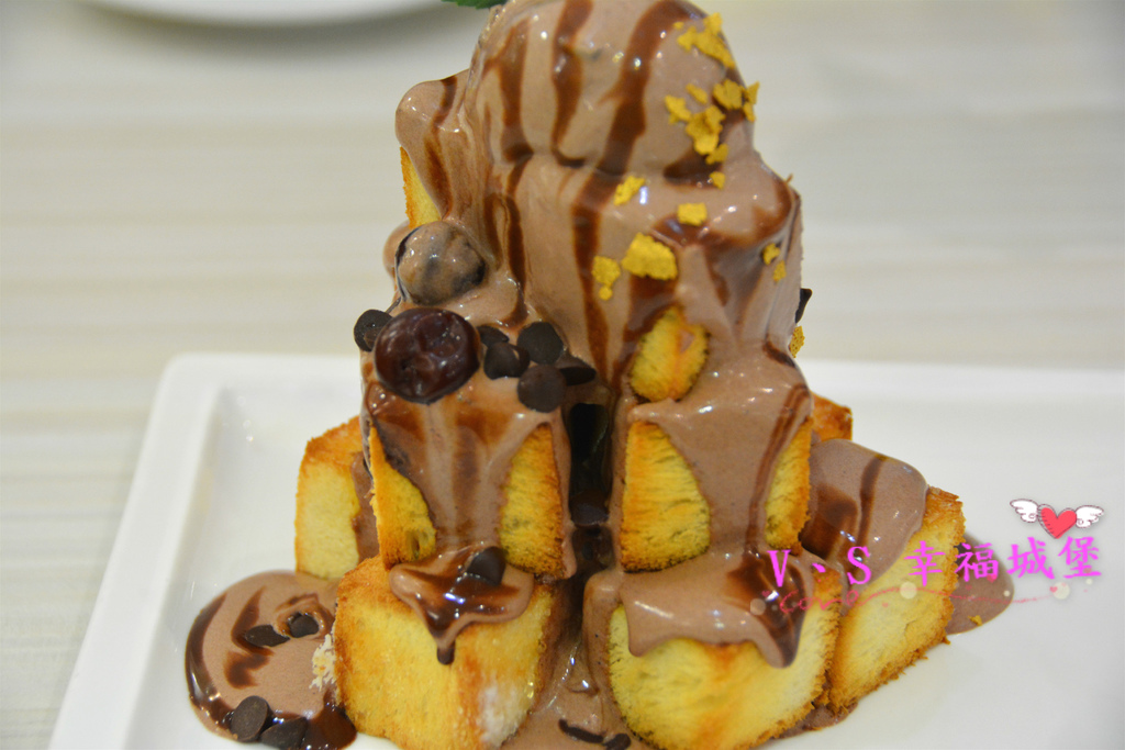 金磚吐司堆疊的金字塔,頂端放上香濃的巧克力冰淇淋,再灑上奢侈的金箔,這真的是貴婦的享受阿 !!!