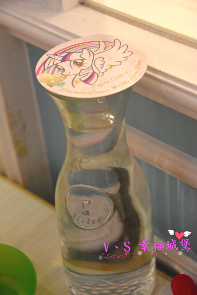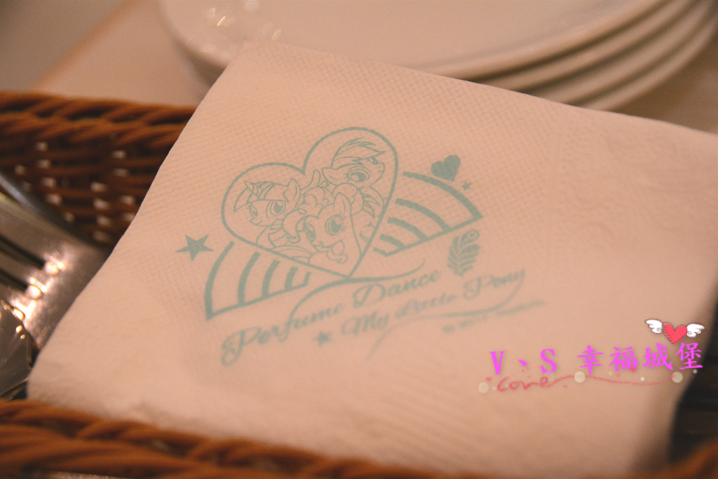 連桌上的餐巾紙、杯墊都是彩虹小馬的蹤跡。。