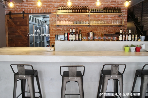 『方塊Pasta&Coffee』營業空間有2層樓,一樓有兩個四人座及吧台區,若一個人來可以坐吧台