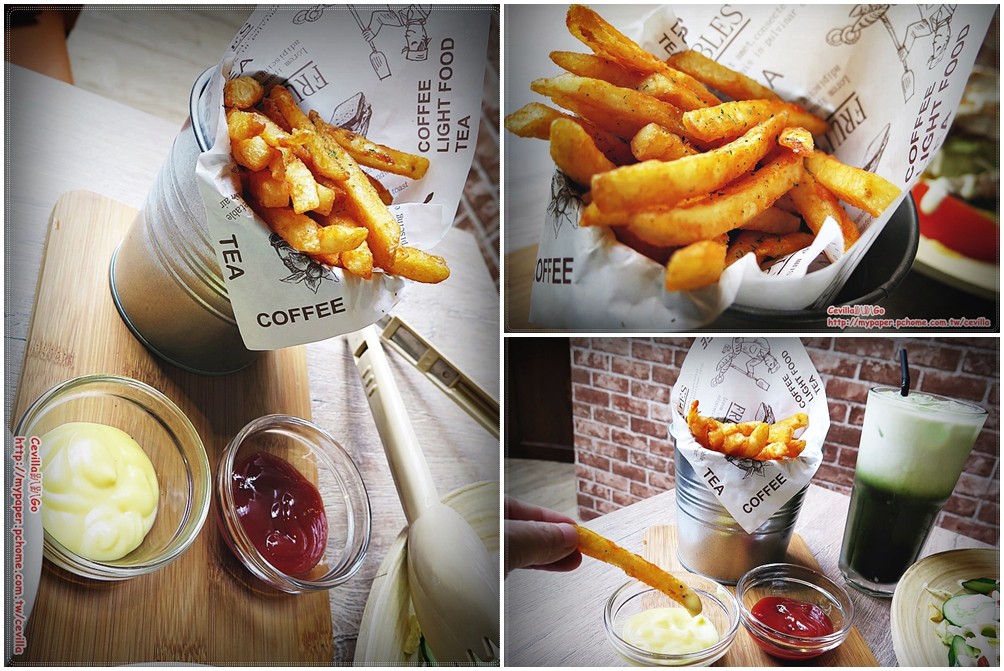 使用鐵桶裝盤,另外附兩種醬料,芥末蜂蜜醬和番茄醬,不過薯條本身味道就很足夠,所以沾醬沒有什麼使用到。