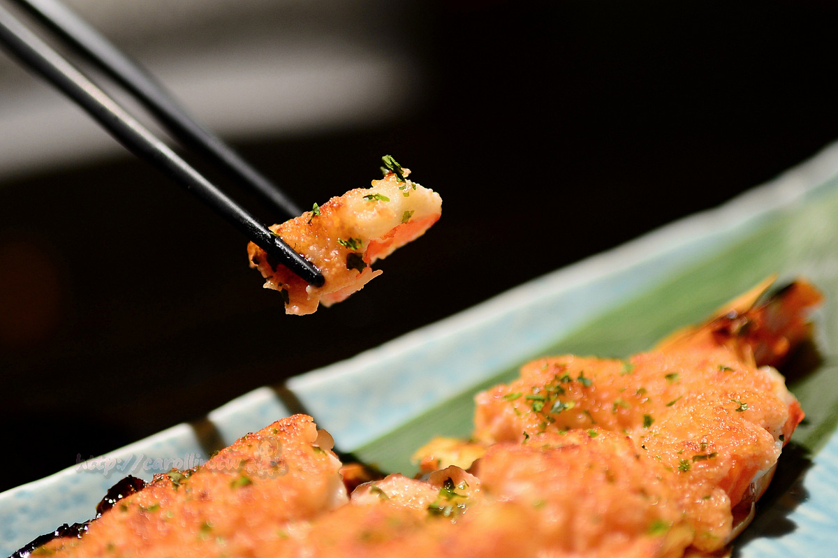 車蝦表面布滿店家自家特調的明太子醬,明太子比例非常高,口味豐厚不膩。