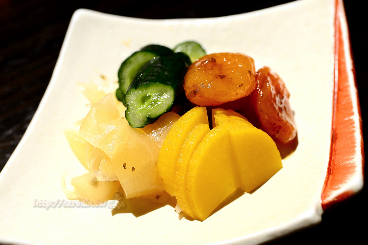 一旁的佐菜則是日本節瓜和漬番茄、漬金桔,味道也都很讓人喜歡,尤其兩顆果子還有清味蕾的效果。