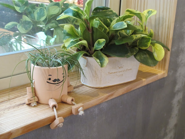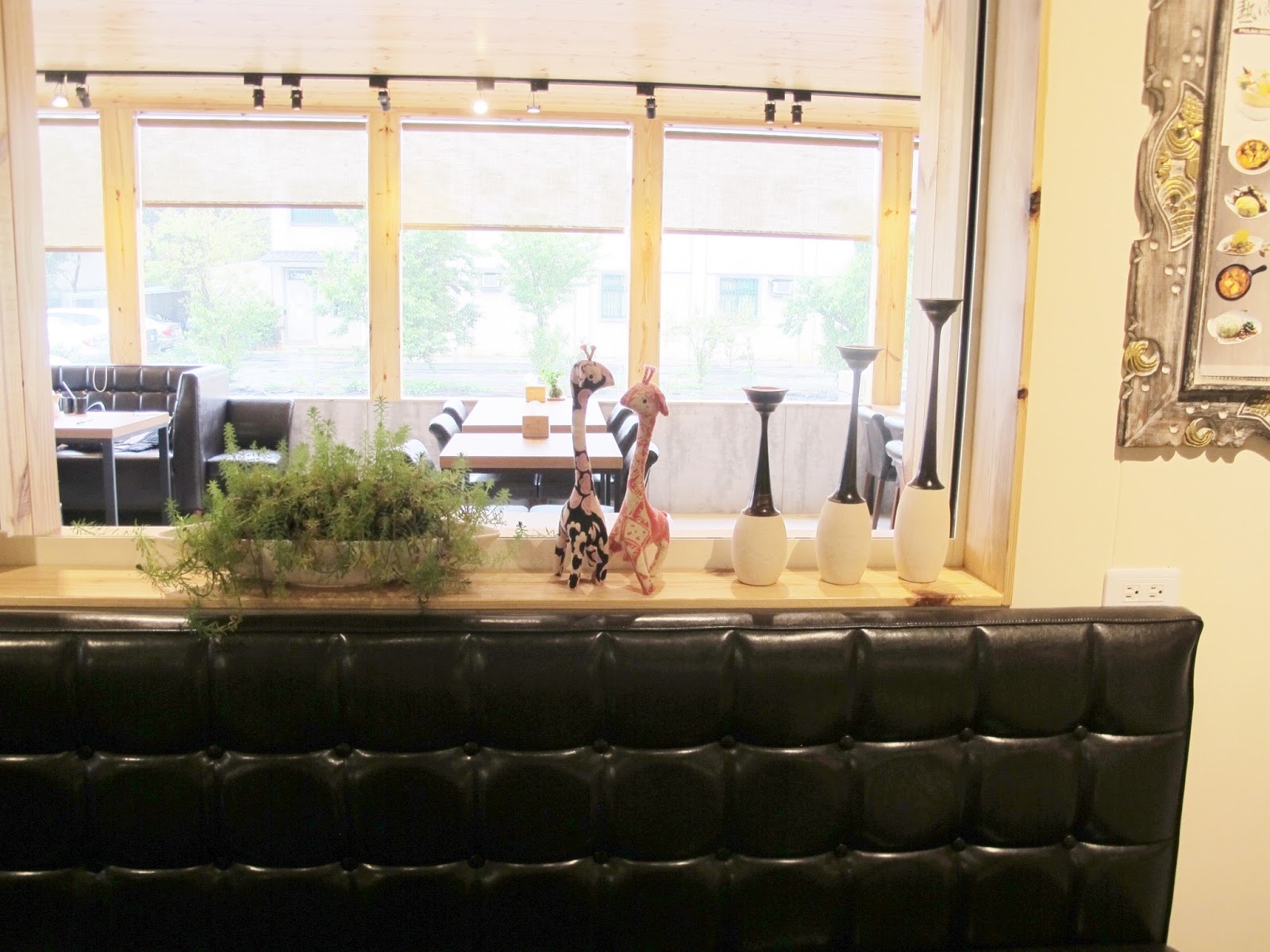 店裡運用許多綠益怖置及窗口前擺放許多可愛造型玩偶