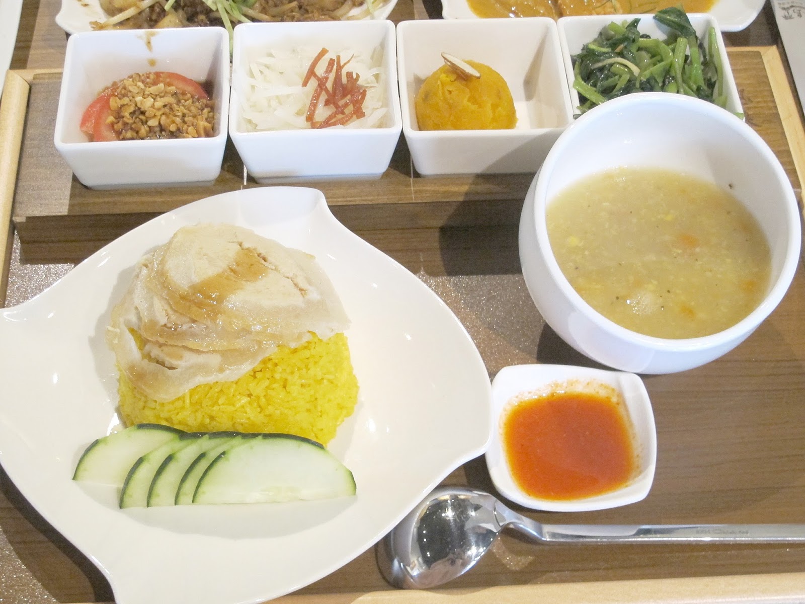 海南雞飯,主菜油雞搭上特製辣椒醬與薑黃飯一起香味濃郁非常下飯