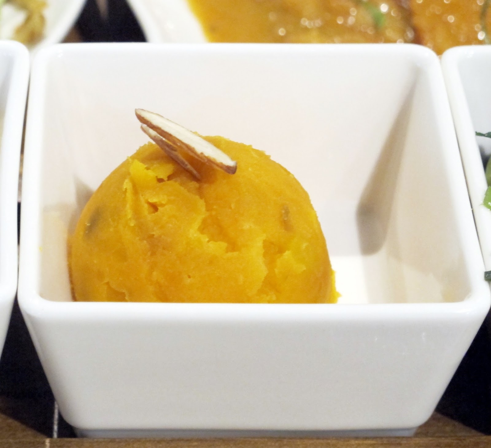 咖哩天貝,片裝的天貝淋上南洋咖哩醬一起入口