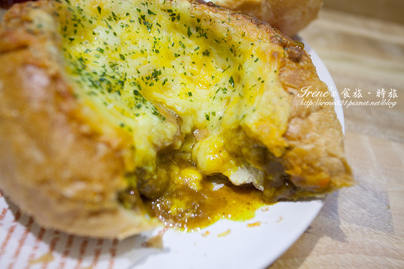 切開後滿滿的咖哩醬和起司傾洩而出,非常的誘人;