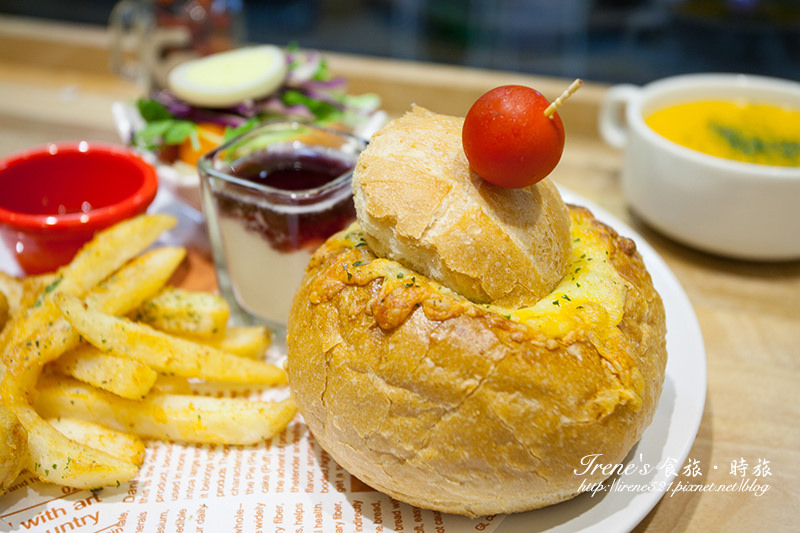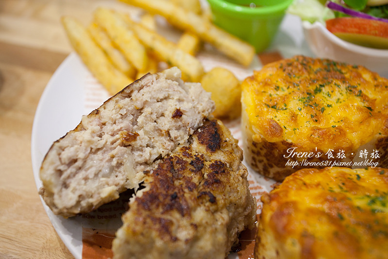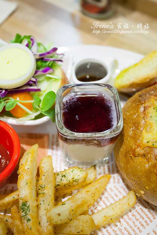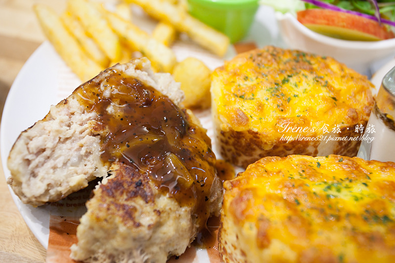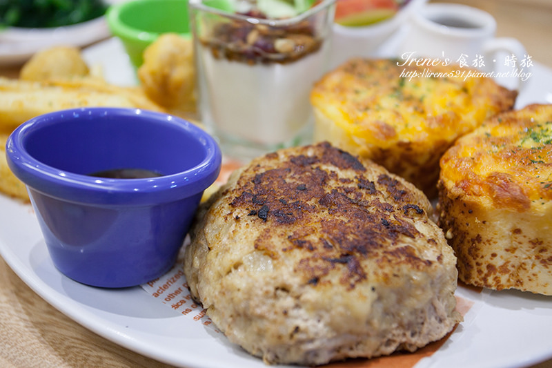 2月才新推出早午餐系列,一大塊漢堡排加上焗烤軟法、薯條,飽足感十足,