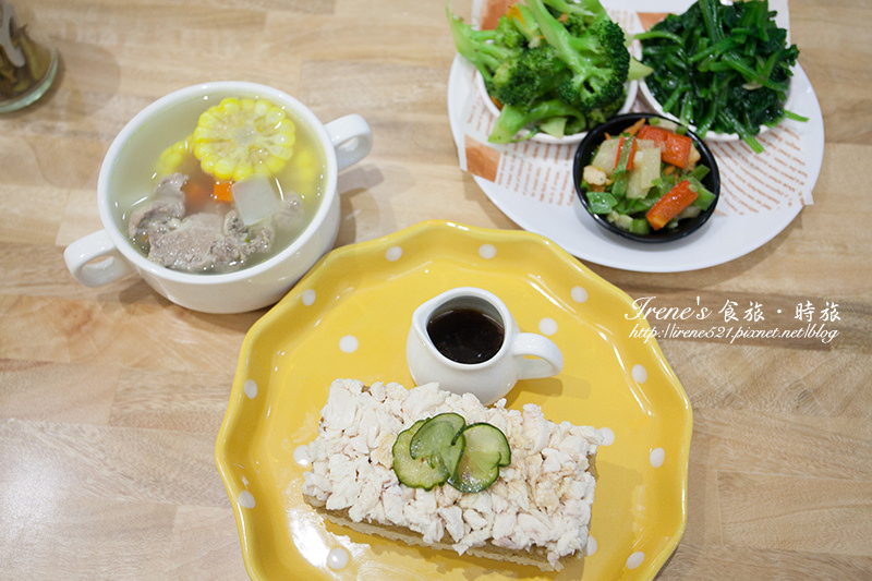 搭配三款每日現炒的配菜,不用大鍋菜來製作,避免因時間久了而讓青菜的口感以及賣像都變差,