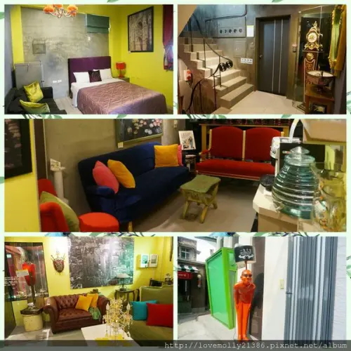 看首圖的照片可以知道浴室是用毛玻璃隔出來的,裡面沒有簾子喔~雖然很模糊但還是看得出輪廓啦,如果不是跟男女朋友一起來的可能要先知會一下室友喔XD房間的部分就差不多這樣了,不過我滿鼓勵大家可以去別樓走走看看,應該會有不同的驚喜,只是要小心不要打擾到其他的住客,像下圖樓梯間的佈置我就覺得非常非常有味道