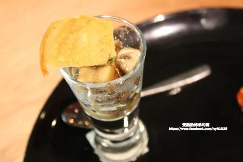 杯子裡的是海鮮巧達濃湯,是真的可以喝到海鮮的喔~還滿驚喜的,中間那匙奇異果我直接給朋友了,不喜歡綠色的XD 餐包和奶油很不賴