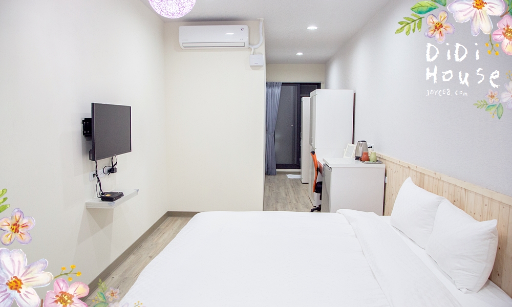 這是我們當天住的雙人房型,雖然同是雙人房但從網路上也可以看到,每間房型設計都不太一樣,隔天退房時,有麻煩管家讓我們拍一下其他房型給大家參考,一起來看看!查詢「DIDI HOUSE」空房日期|線上看評價及訂房,請點我。