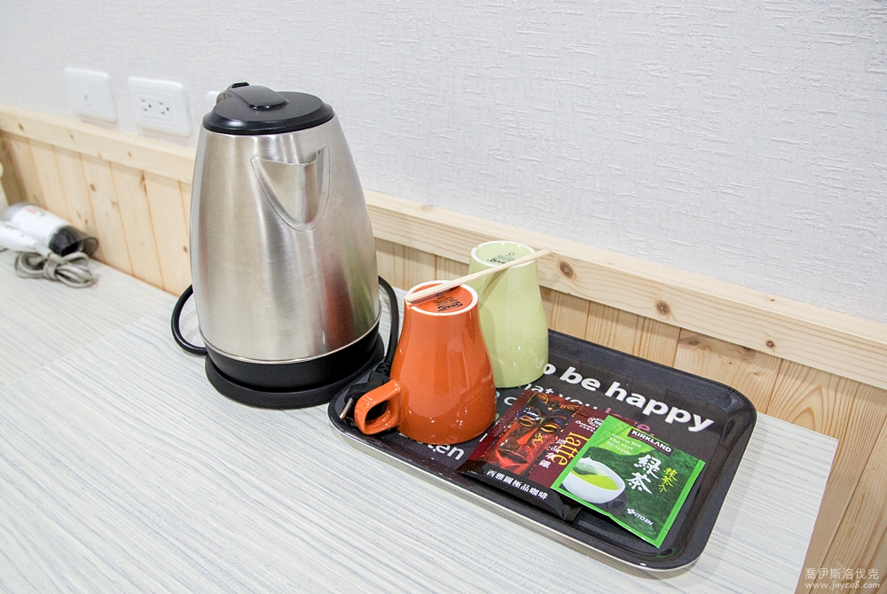 房間內有熱水瓶以及茶包,吃完消夜(((大東夜市、武聖夜市超多小吃
