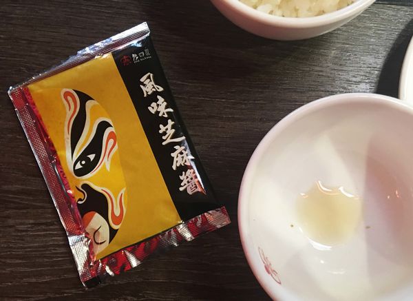 無論白鍋還是紅鍋,基本上煮好的食材建議吃原味,比較重口味的人可以挑選芝麻醬,比較特別,當然也可以像妹子一樣,把川味涼粉的湯汁留起來沾取。