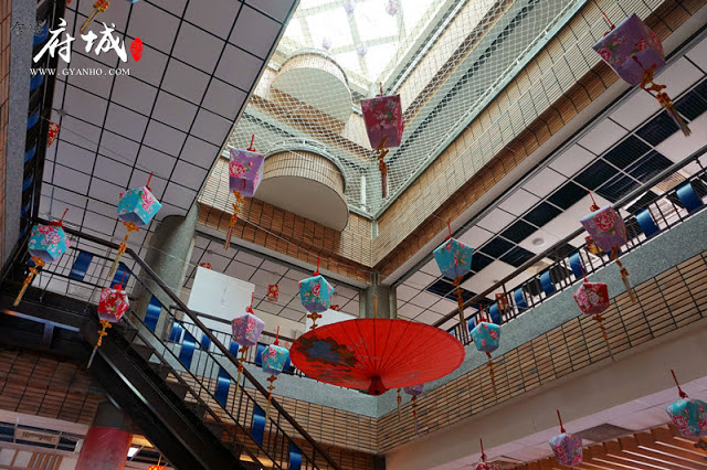 在現代化的建築裡,處處可見客家建築風格,例如地上的復古瓷磚,垂吊在天花板上的客家花布燈飾等,更難能可貴的是,這裡竟然有傳統客家建築必不可少的天井!