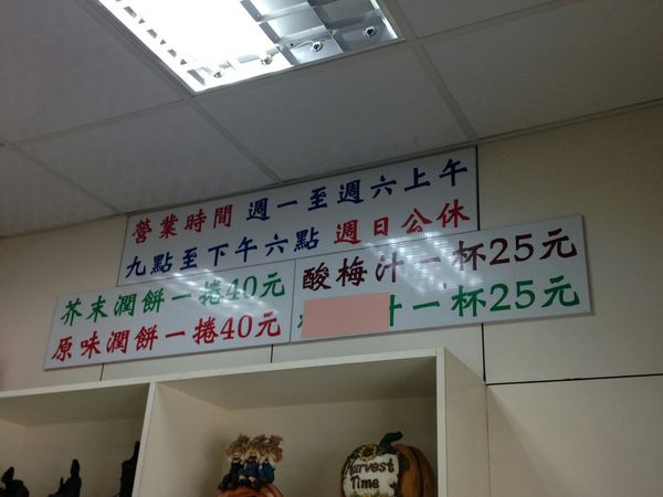 牆壁也有貼出公告潤餅常溫保存四小時內佳以及因為高麗菜滲湯汁出來是正常的