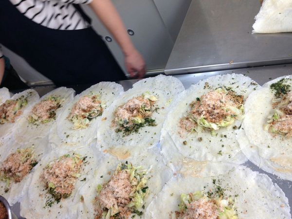 看著一卷一卷的潤餅包好之後裝盒再拿給客人