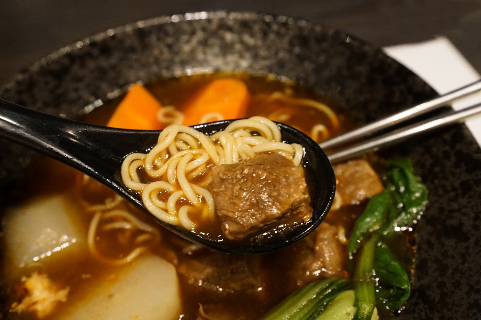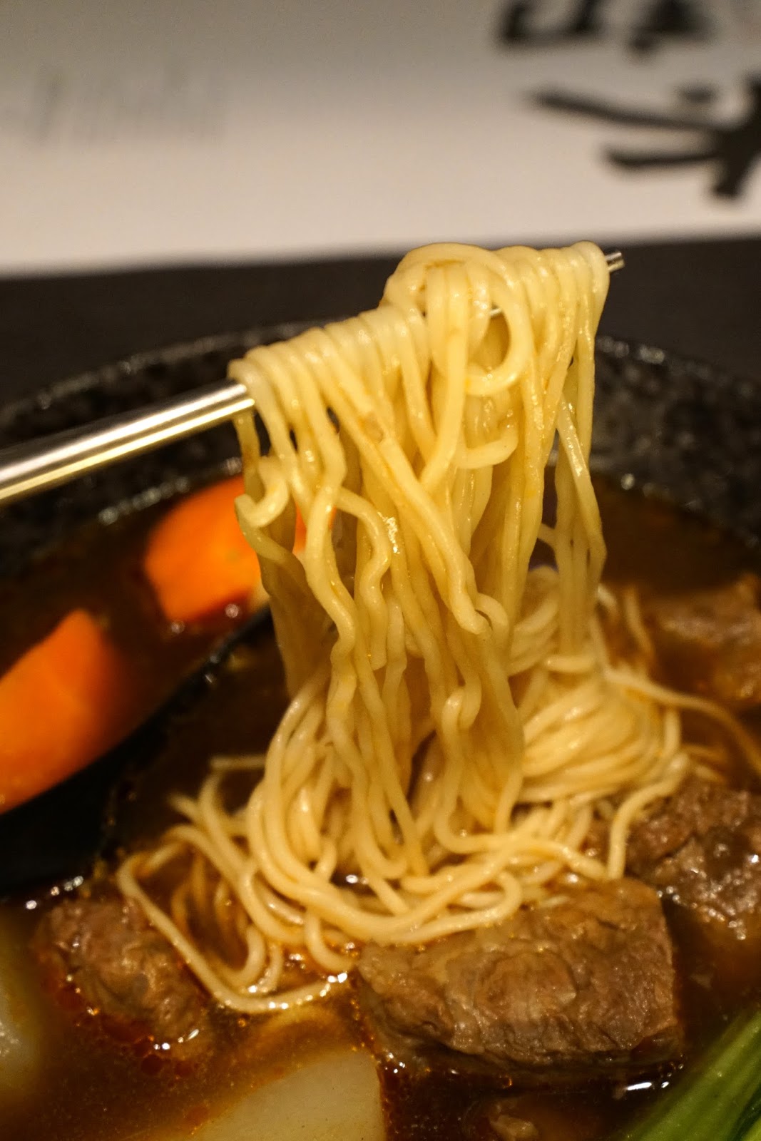 拉麵的Q度很不錯,麵條吸飽牛肉湯汁,吃起來香Q夠味!
