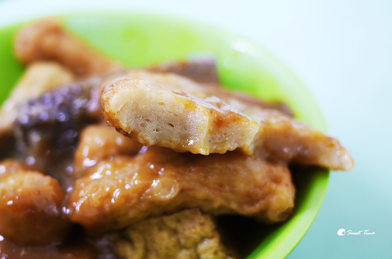 混了蒜泥及些微的辣椒醬後,這麵線口感好棒哦,三二下馬上被Tina完食,每次來都覺得好滿足啊! 雖然超想點大碗的,但因為還想再裝甜不辣,所以作罷了。