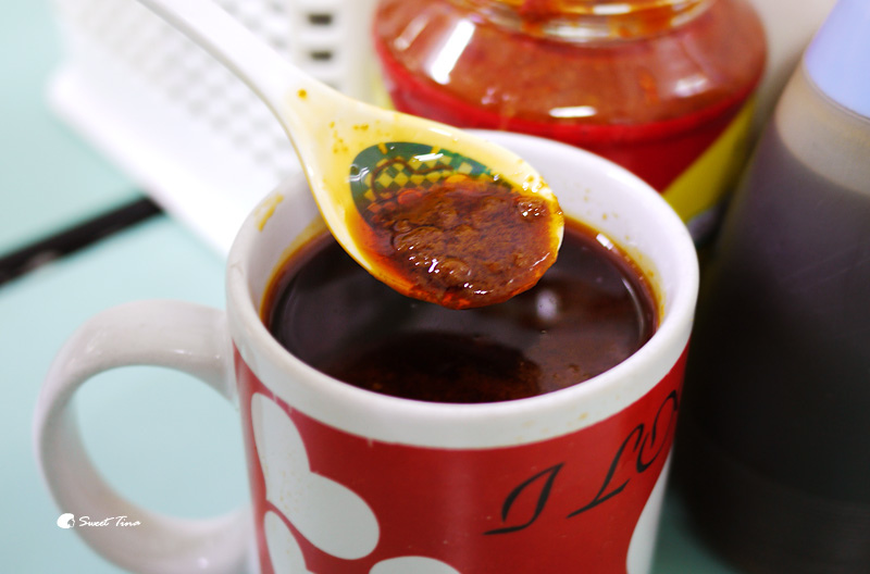 這兒提供了二種辣椒,一種是一般不怎麼辣的辣椒醬,另一種則是照片這種,加一點點就非常辣了哦,但Tina比較喜歡這種辣椒,香氣較足~