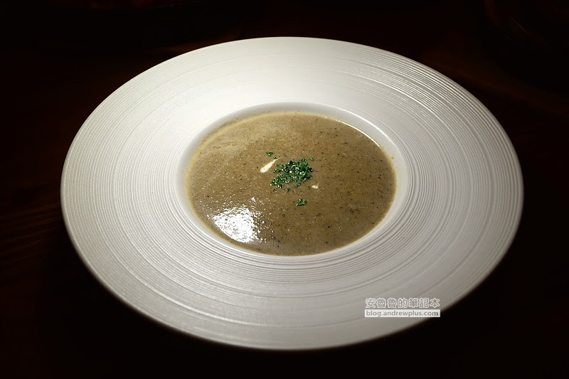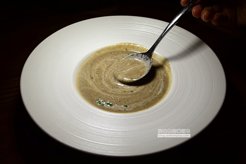 由雞高湯為基底的滑順濃湯,彌漫著陣陣松露香,喝起來有蘑菇的顆粒感些許的黑胡椒辣味。