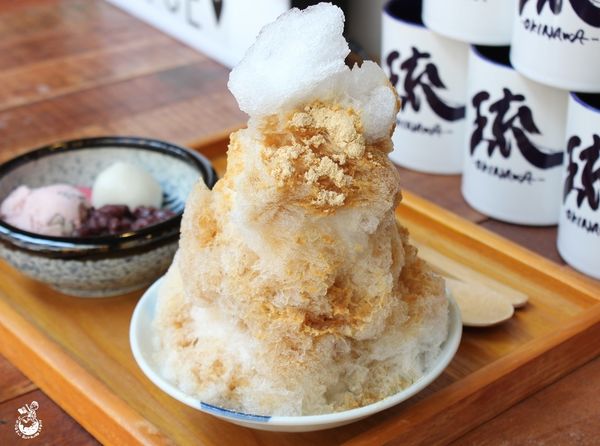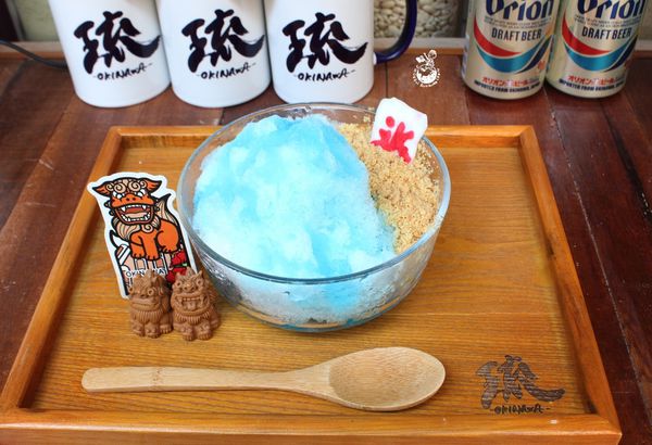 黑糖是沖繩的名產之一,而多良間島的黑糖產量則是沖繩之冠,老闆選用日本進口之多良兼黑糖製成黑糖糖漿,淋上冰後再撒上精緻豆粉,整碗冰香氣充足,另外還有附一小罐黑糖讓人自行添加,讓喜歡吃黑糖剉冰的我十分滿足!!!