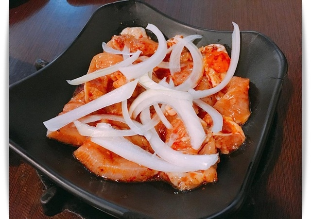 燒烤的牛肉有用新鮮果泥醃製,烤起來的味道非常好吃呢!!!