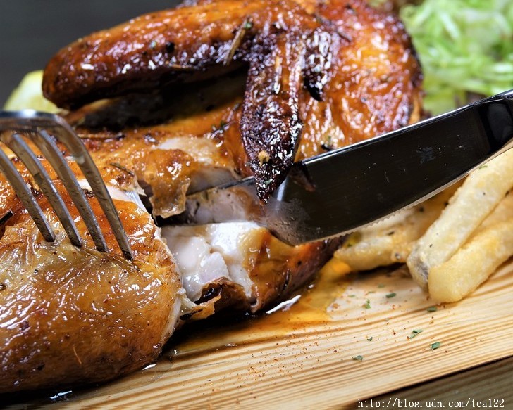 以多種義大利香枓混合調配,灑上主廚特製的肯瓊香料粉,增加風味層次,皮薄而脆,一刀切下,滿的汁溢了出來,白嫰的肉塊,當下讓人唾液直流,火候掌控得很好,很成功的料理。