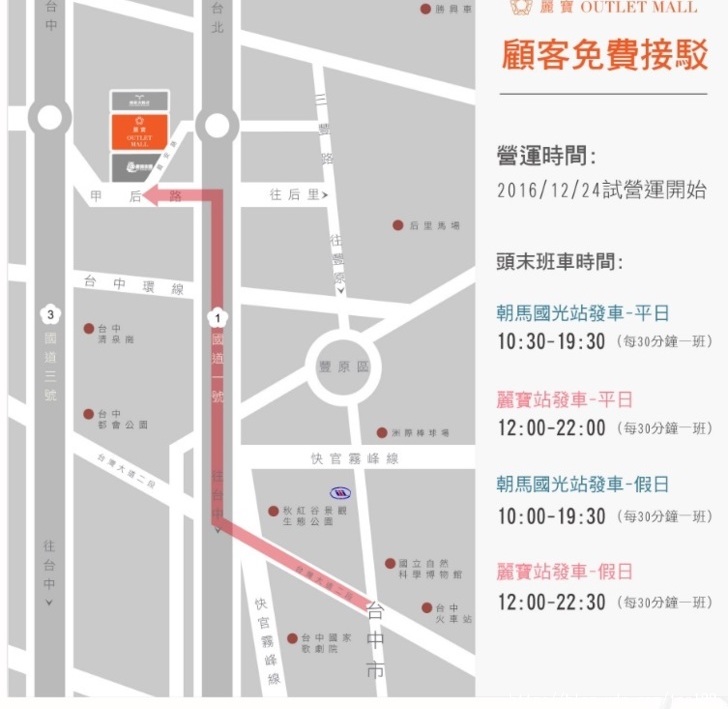 地址:麗寶outlet一樓噴水池旁-1107店鋪(台中市后里區福容路201號)