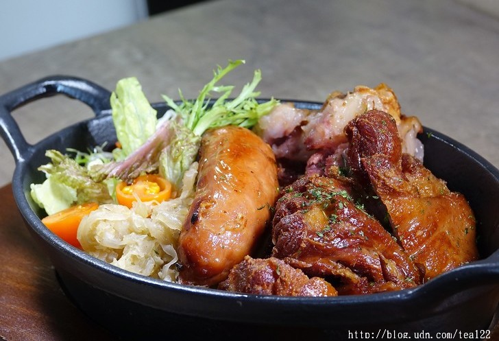 德國脆皮豬腳、帶骨香腸、德式酸菜佐蜂蜜芥末(720元)