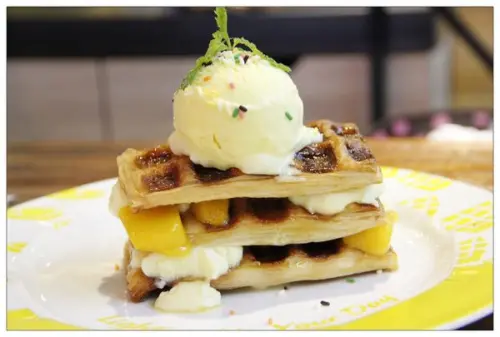 烤過的棉花糖微微融化在厚片土司上,甜甜的糖粉+蜂蜜+巧克力,簡直是甜點的繽紛饗宴,難怪叫棉花糖圓舞曲,十分貼切。