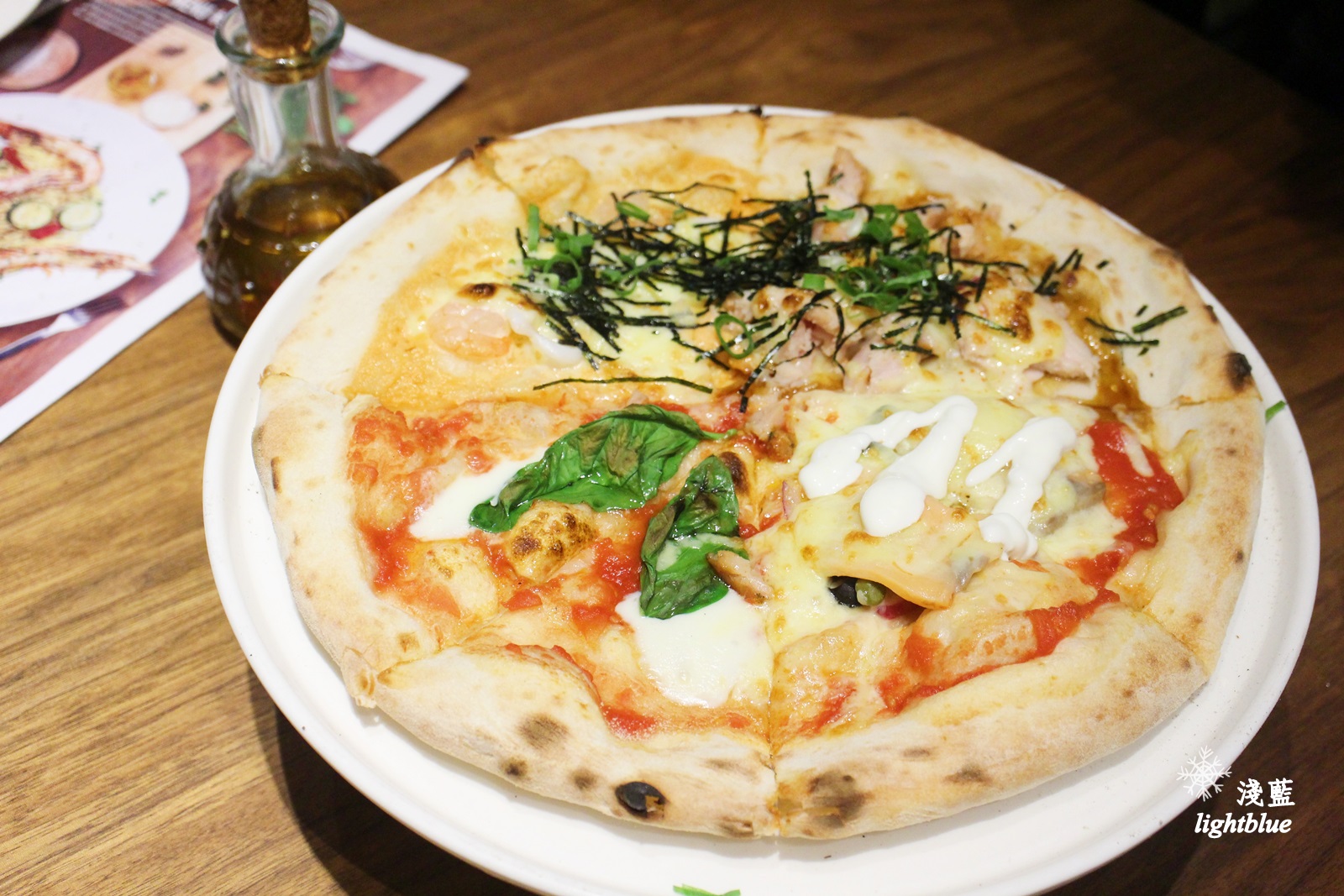 披薩口味很多,但我一眼就看到了這個Japoli特色拼搭,選這款就能吃到四種口味喔,兩個人的話點這個比雙拼更豐富,不過口味是固定的不能換