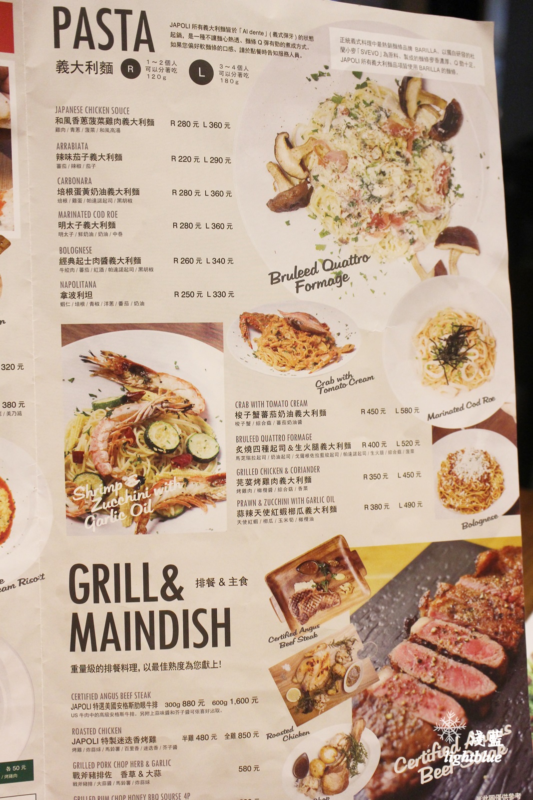 義大利麵選擇很多,可以點一般量或大份的來分享,更豐盛的還有排餐