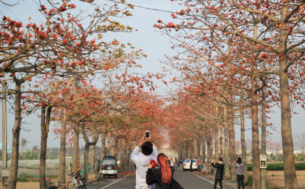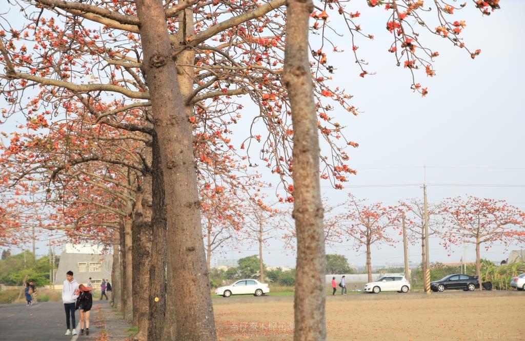 在台南市將軍區苓和里鄉道旁種植的木棉花