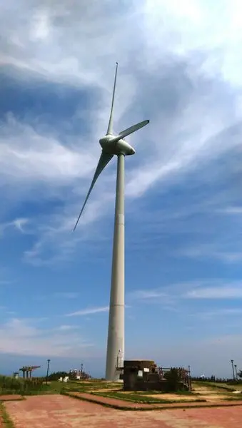 一座座巨型的風力發電機,在蔚藍的天空中轉動