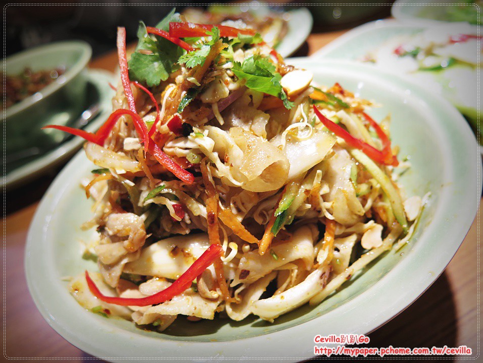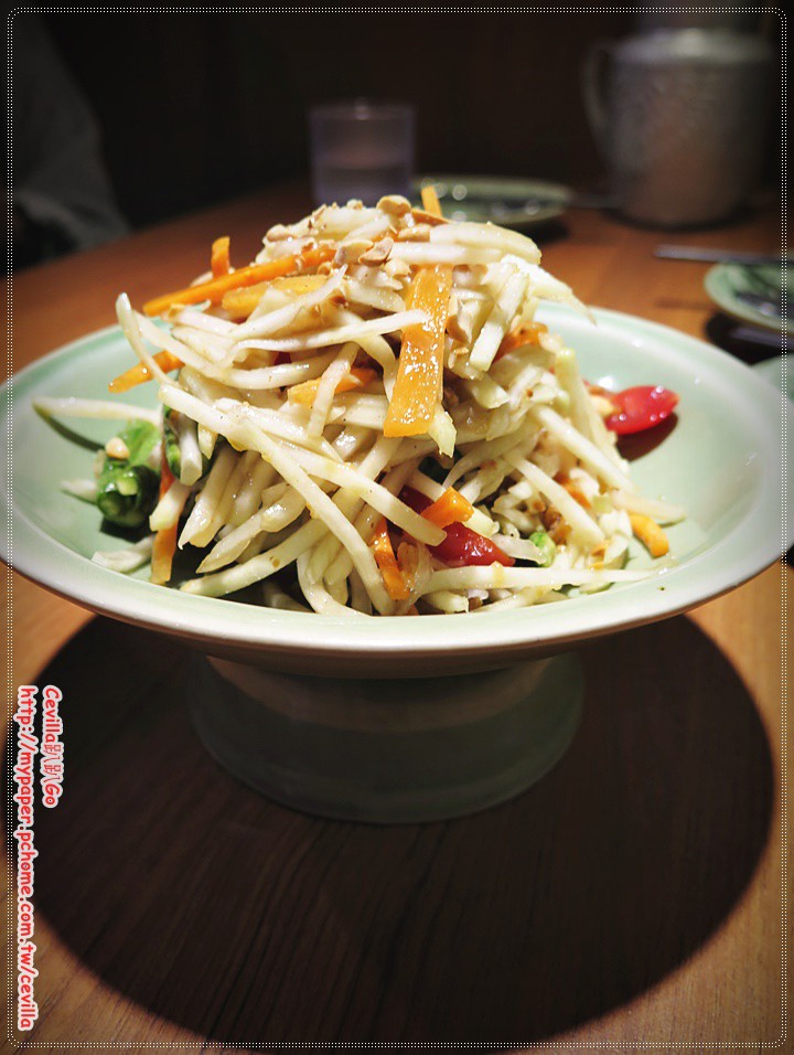 青木瓜切的比較厚不會水水爛爛的,爽脆中帶點韌度的口感,醬料調味酸酸辣辣帶點甜味,很適合夏天使用的開胃菜 。