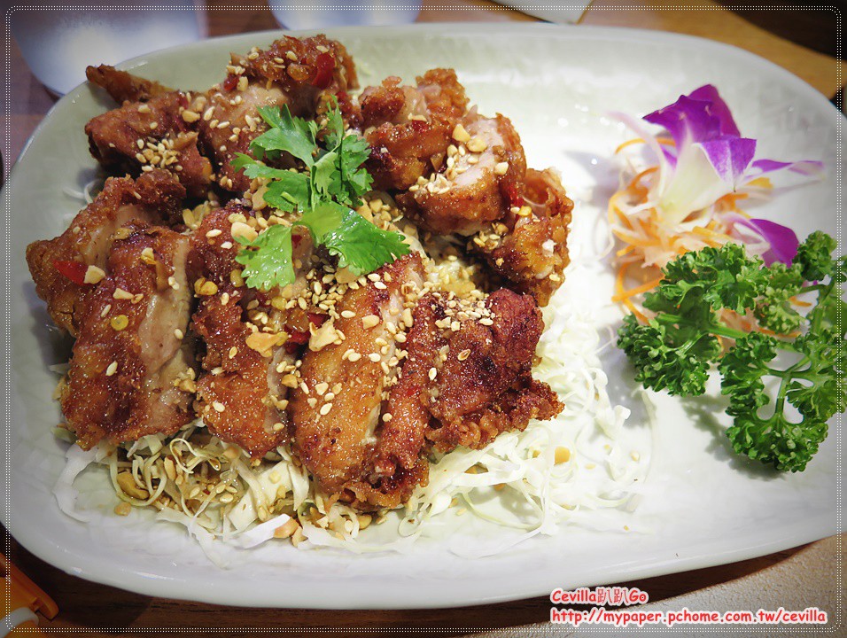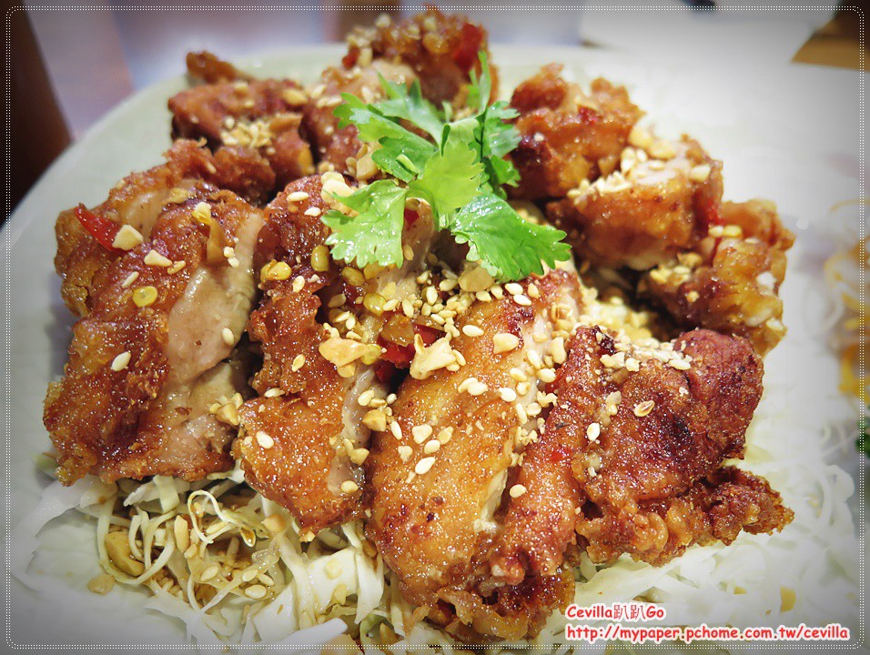 炸的非常酥脆的雞腿肉,醬汁已經是先淋上去,屬於清爽型的一道菜不會辣,大概是怕小朋友不敢吃。