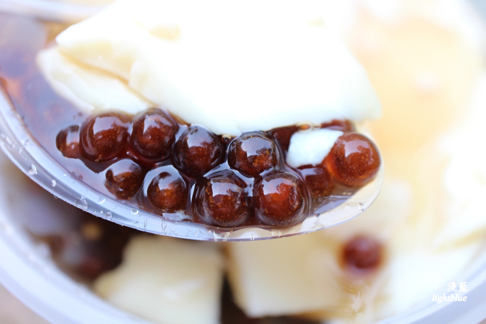 買了一碗9號黑糖粉粿+粉圓+豆花帶走,老闆還問我要溫的冰的。