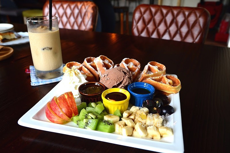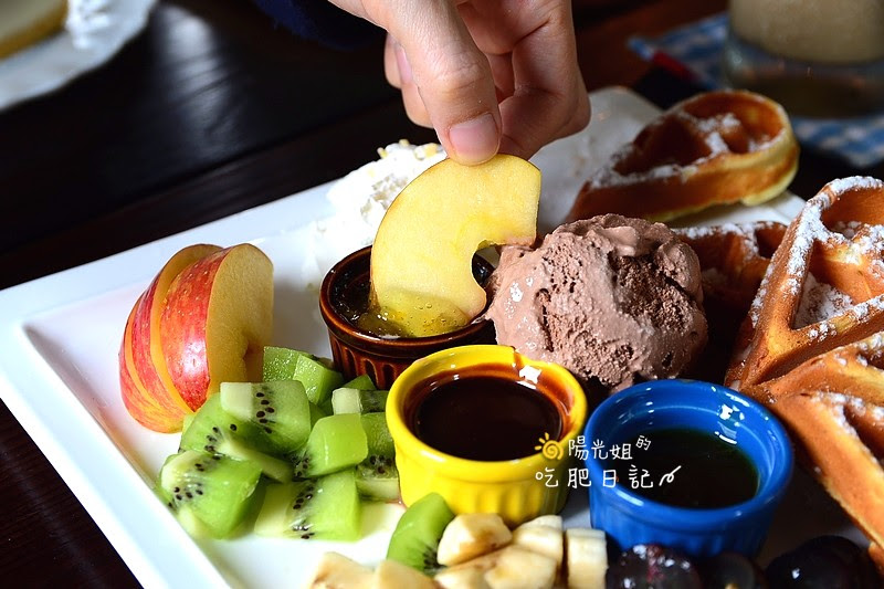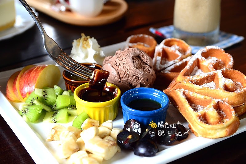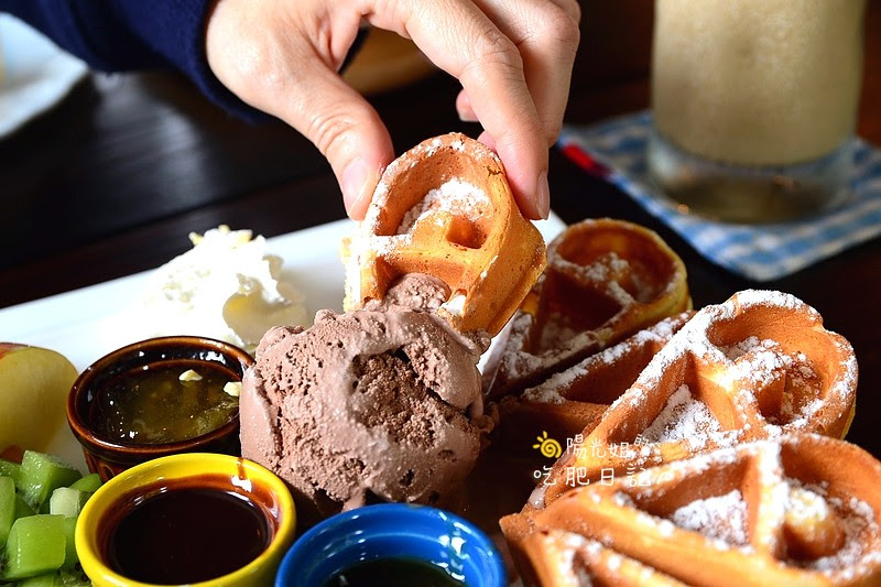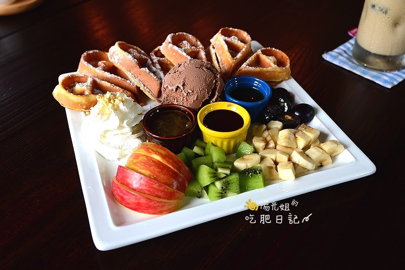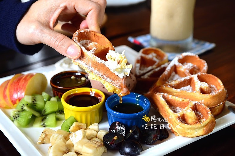 製作過程中店裡不斷飄出陣陣香氣,一上桌的豐盛模樣讓人心花怒放,有外脆內軟撒上糖粉的心型鬆餅