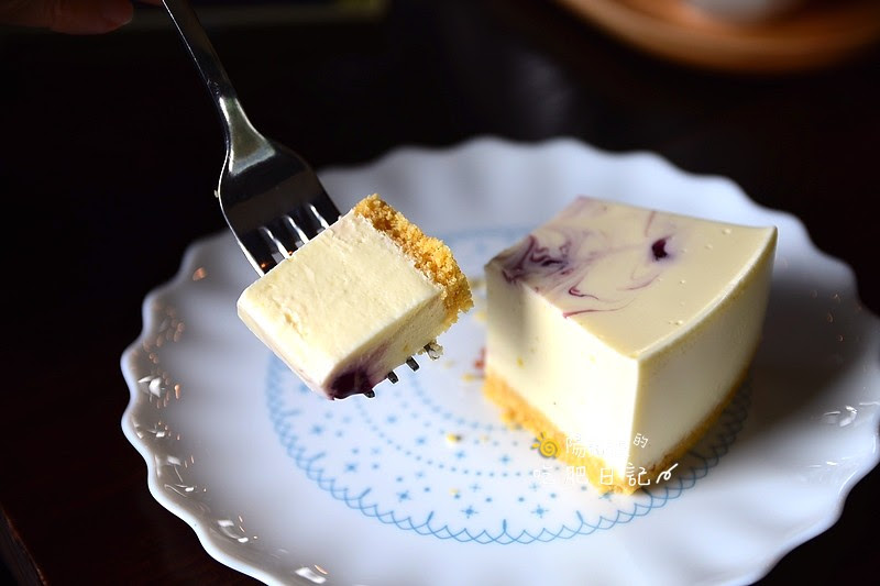 ▼一入口乳酪香氣就默默在嘴裡化開,隱隱約約中透出淡淡的藍莓果醬香甜氣味,而底層的餅乾底和剛剛介紹香蕉蛋糕的不同,是比較鬆軟能輕易在嘴裡散開的類型。